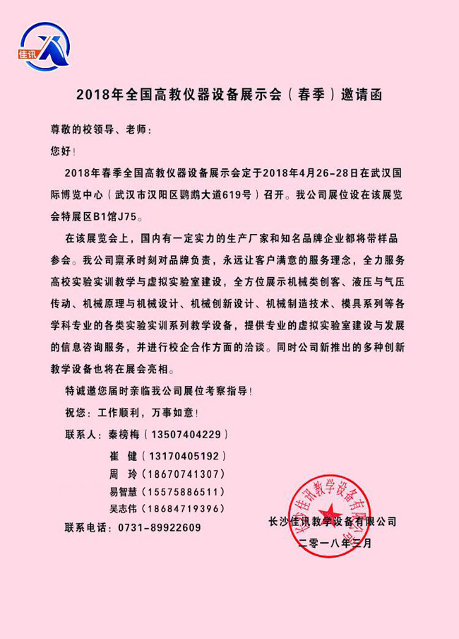 2018年全國高教儀器設備展示會(春季)邀請函